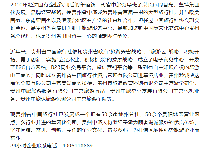 旅业必存榜优秀地接推荐—贵州省中国旅行社有限责任公司